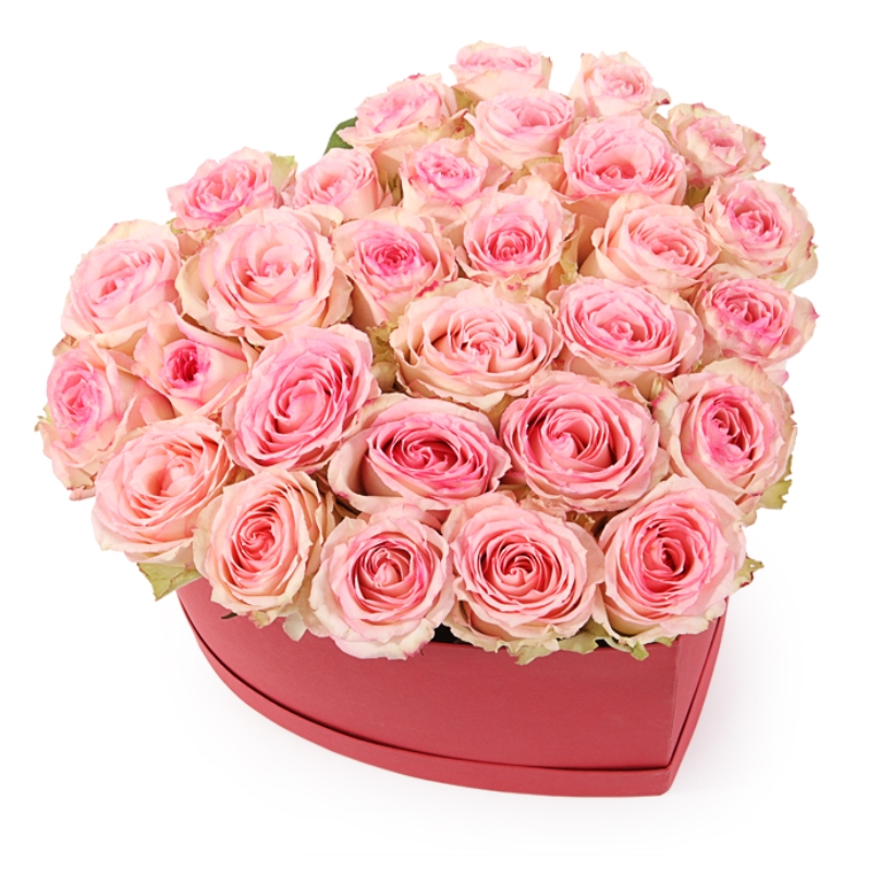 Сердце из 31 розовой розы в коробке